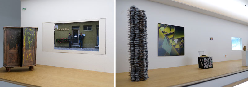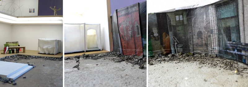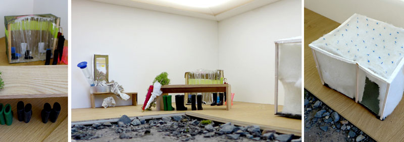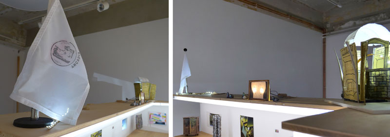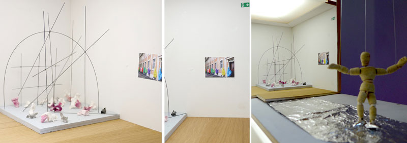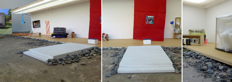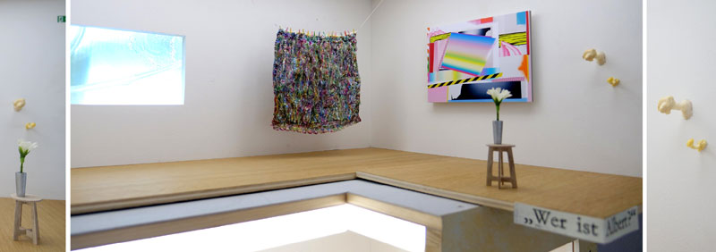 NE TRAVELLEZ JAMAIS Das KloHäuschen reist nach Dresden An sich ist das KloHäuschen dem Reisen gegenüber ja recht kritisch eingestellt - ihr wißt schon. Damals, 2021, als es zum ersten Mal zu einer Reise eingeladen wurde, zum im Arkadienfestival in Ebersberg, da fragte es sich schon sehr, ob und inwieweit exzessives Reisen überhaupt nötig ist und stellte fest: Das bestgehütetste Geheimnis arkadischen Daseins ist es, an dem Ort, an dem man ist, glücklich und zufrieden zu sein. Nach Arkadien fuhr es dann doch. Na - und 2023, da lernt es (lustigerweise auch beim Arkadienfestival) zwei Dresdner Künstler kennen. Sie tauschen sich aus, es kommt zu Besuch und Gegenbesuch - und wir treffen in Dresden auf das Kunst- und Kulturzentrum GEH8 und den GEH8 WERKRaum. So entsteht mit Henz Schmöller, einem dieser beiden Künstler, die Idee, daß das KloHäuschen auch mal nach Dresden reisen könnte – und der GEH8 WERKRaum ist bereit, sich als Feriendomizil zur Verfügung zu stellen. Und wir geben alles, daß das KloHäuschen, das als reiseunerfahrene Immobilie die Welt ja nur von Klischees wie Postkarten und so kennt, sich "wie in Dresden" fühlt - also einschließlich Fassade und Prachttreppe. ![]() Aber .... Das KloHäuschen? Reisen? Für alle, die 2021 die Reisen vom KloHäuschen noch nicht verfolgt haben, hier ein kurzes Update: Also, seit seiner 5. Biennale (2020), besitzt Das KloHäuschen eine mobile Kunsthalle (Architekt: rasso rottenfusser). Diese KH-Kunsthalle hat 5 Stockwerke, Dachterrasse und Außenbereich – alles im Format 1:12. Und ja, damit kann es reisen - und als Fortbewegungsmittel benutzt es dabei seinen etwas speziellen Grundriß, sozusagen als "fliegenden Teppich". Und das Tollste ist: Das KloHäuschen reist natürlich nicht allein: Bei seinen ersten Reisen, da waren seine Reisegefährt*en die Künstler* dieser 5. Biennale. Jetzt hat es seine Reise-Ausstellung neu zusammengestellt: mit dabei sind jetzt über 50 seiner ehemaligen Gäste. Also es hat von seinen bisherigen Reisegefährt*en alle gefragt, die selber schon mit ihm eine eigene Arbeiet gemacht haben - und alle weiteren Einzel-Gäste bis heute. Und alle zeigen jeweils eine künstlerische Arbeit, die was mit der Arbeit zu tun hat, die sie damals mit dem KloHäuschen gemacht haben. Und wir freuen uns, vor Ort in Dresden auf 12 Künstler* aus dem Netzwerk unserer Gastgeber GEH8 zu treffen, die von Heinz Schmöller eingeladen wurden, eine aktuelle freie künstlerische Arbeit zur gemeinsamen Ausstellung beizutragen. Alle Arbeiten sind dabei natürlich auch in Miniatur, im Format 1:12. Und die echten, also die großen Arbeiten, die finden sich als Doku in unserem Katalog, den ihr hier online anschauen könnt: +++ DOWNLOAD KATALOG als pdf +++FotorundgangUnd hier einige Einblicke in die Ausstellung. Namen der jeweils sichtbaren Künstler immer von links nach rechts. Fotos: Tiziana Foit und Anja Uhlig ![]() Dachterrasse -1: Peter Kees - Uschi Siebauer - JC Leopold ![]() Dachterrasse -2: JC Leopold - Uschi Siebauer ![]() 5. Stock -1: Johannes Lotz - Vincent Mitzev & Valio Tchenkov - Uwe Jonas - Matthias Bausch - alle weiteren s. nächstes Bild ![]() 5. Stock -2: mittleres Bild: Matthias Bausch (Wand) - Zoe Gudovic (Objekt) - Heinz Schmöller (Wand + Detail links) - Lucas Oertel (Sockel) - Andrea Unterstrasser (Wand + Detailbild) - Regine Elbers & Martina Kändler (Leuchtkasten) ![]() 5. Stock -3: mittleres Bild: Regine Elbers & Martina Kändler - Heidi Mühlschlegel (Vorhang) - Ena Oppenheimer - Martin Schmidt (Objekt + Dateil links) - Albert Coers (Ecke) - Olaf Probst (Wand) ![]() 4. Stock -1: Anton Thorwart - Stephanie movall - Carolin Wenzel - Bela Alvarez - Stefan Hagen (Objekt) - weitere an der Wand s. nächstes Bild ![]() 4. Stock -2: Stefan Hagen (Objekt) - Helena Rossner (4 Zeichnungen) - Torsten Hink (Plakate Wand + Boden) - Claudia Kleiner (2 Ölbilder) - Rupert Joerg (Boden) - Natalja Herdt (Detail an Scheibe) ![]() 4. Stock -3: Rupert Joerg (Boden) - Monika Kapfer (Ecke) - Natalja Herdt (Scheibe) - Albert Coers (Ecke oben aussen) - rasso rottenfusser ("aussen") ![]() 3. Stock -1: Tobias Bohnet (Foto, Wand) - 9Volt (Aufsteller) - Veronika Veit (Leuchtkasten) - Tommy Schmidt & Max Haarich (Wand - 18 Ikonen von (o.li. nach u.re.): Michaela Neumann, Alexander Meyer, Caro Kiemle, Janina Totzauer, Rita Hensen, Alix Stadtbäumer, Lena Bröcker, Christoph Lammers, Afra Dopfer, Veronika Hilger, Patrick Gruban, Doris Hahlweg, Katharina Weishäupl, Mary Kim, Edna Rasch, Judith Egger, Susanne Pittroff, Oliver Westerbarkey) - Thomas Judisch (angeschn.) ![]() 3. Stock -2: Thomas Judisch (Objekt) - Ulrike Mundt (Kreuz) - Anette Friedrich Johannessen (auf der Bank) - Stefan Maria Marb (Boden) - Martina Kändler (Wandobjekt) ![]() 3. Stock -3: Sebastian Klug - Marleen Andreev - Raquel Ro ![]() 2. Stock -1: Kristin Brunner (Boden, angeschn.) - Regina Baierl (Wand) - Yutta Bernhardt & Das KloHäuschen (Sockel) - Andreas Pytlik (Wand) - Stephanie Maier (angeschn.) ![]() 2. Stock -2: Stephanie Maier - Günter Nosch - Suntje Sagerer (Wand) - Judith Egger (hängend) ![]() 2. Stock -3: Nina Annabelle Märkl - Patricia London Ante Paris - Guida Miranda & Christoph Reiserer ![]() 1. Stock -1: Kristin Brunner (Boden und Decke) - Mediendienst Leistungshölle (Wand) - Mary Kim (Wand) ![]() 1. Stock -2: Mary Kim - Janina Totzauer & Magdalena Jooss (auf der Bank) - Johanna G. Eder - Andrea Golla (im Hintergrund) ![]() 1. Stock -3: Stephanie Felber - Sabine Schlunk (Mitte + Detail li.) - Manuela Müller ![]() Aussenbereich -1: Lisa Maria Baier (Bühne) - David Adam (Diorama) - Andreas Mitterer (Holzhaus) ![]() Aussenbereich -2: David Adam (angeschn.) - Eingang - Andrea Golla (1. Stock Eingansbereich) - weitere Einblicke 1. Stock ![]() Aussenbereich -3: Eingansbereich - Krista Burger & Kenneth Letsoin (Wand) ![]() Blick von Außen: Foto: Tiziana Foit Ne Travellez JamaisAch, und weil wir immer wieder gefragt werden, was dieser Titel soll:Es muß